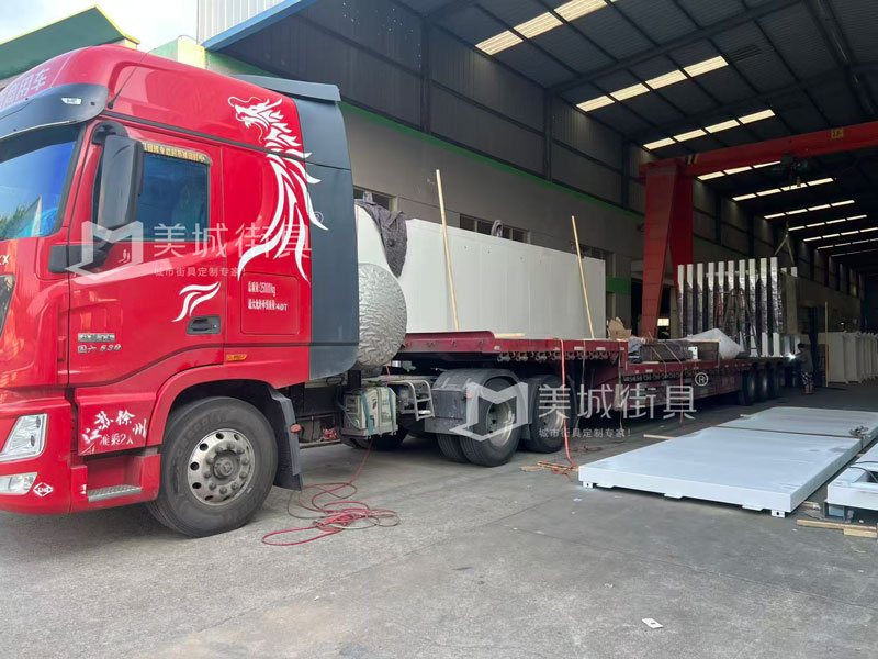 美城街具供應候車亭發貨記錄,以下是公交候車亭發貨現場圖。