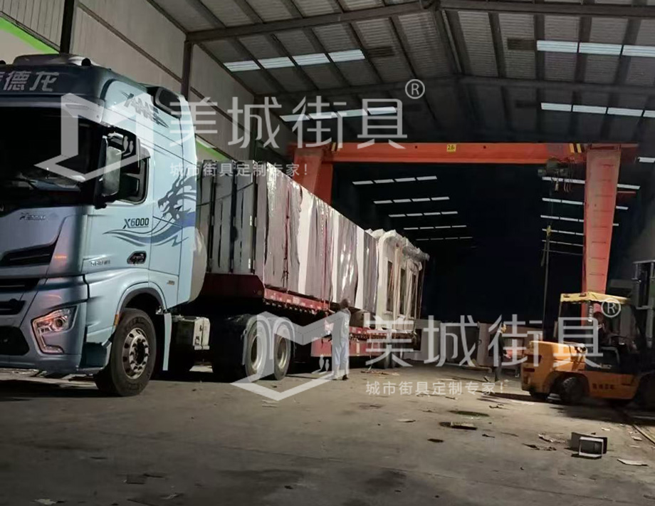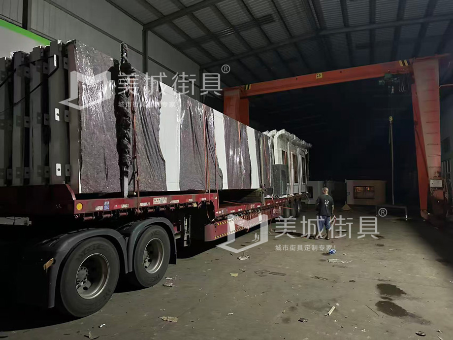 江蘇美城街具為新疆定制公交候車亭第五車發貨案例