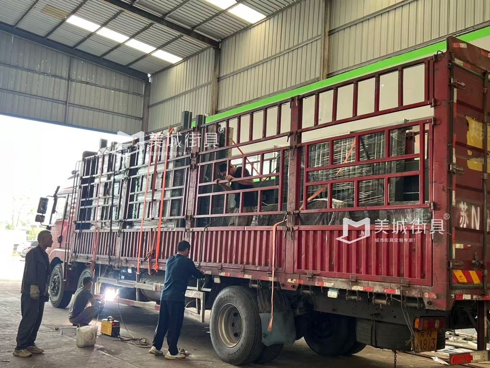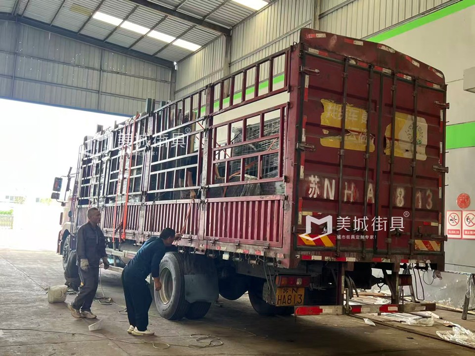 項目介紹:江蘇美城街具為江陰定制候車亭公交站臺發(fā)貨案例