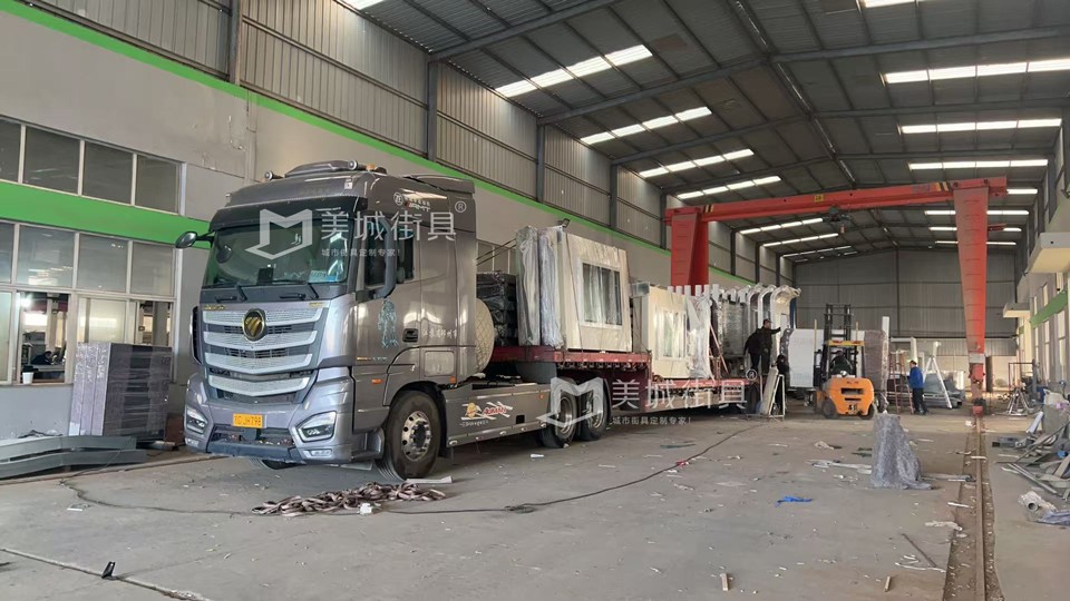 江蘇美城街具為新疆定制第六批候車亭公交站臺發貨案例